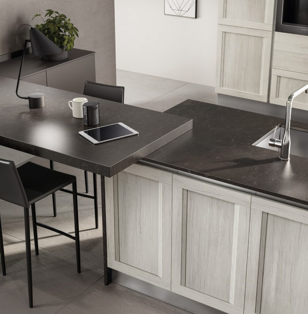 Permette di realizzare piani di lavoro robusti e resistenti. Elevata resistenza ai graffi e facilità di pulizia rende il piano di lavoro molto pratico. D’altro canto però non sono completamente impermeabili e possono macchiarsi se non si presta la giusta attenzione.