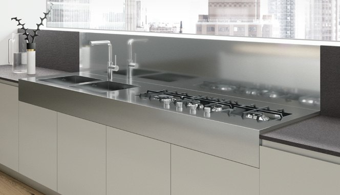 Spesso si utilizza per rivestire cucine professionali. L’acciaio è estremamente pratico e igienico oltre che versatile e resistente. Si sposa bene anche con le cucine contemporanee.